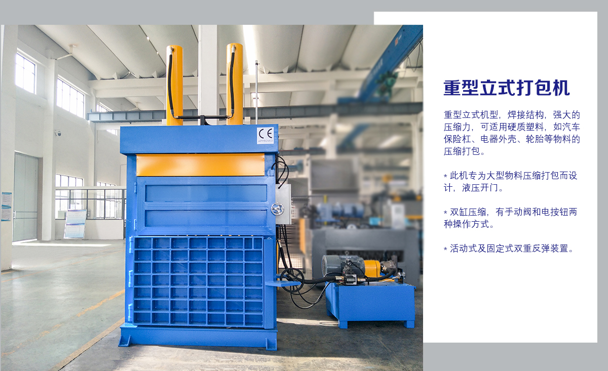 適用硬質(zhì)塑料,如汽車保險(xiǎn)杠、電器外殼、輪胎等物料的壓縮打包。